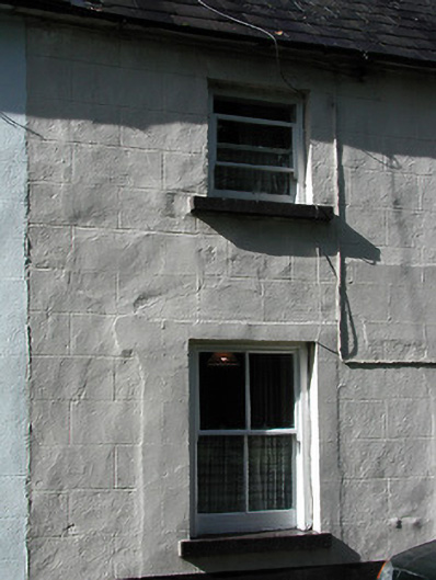 Terraced three-bay two-storey house, c.1825. Part refenestrated, c.1950. One of a terrace of twelve. Pitched (shared) slate roof with clay ridge tiles, rendered chimney stack, and cast-iron rainwater goods on rendered eaves. Painted rendered, ruled and lined walls. Square-headed window openings with cut-limestone sills, and two-over-two timber sash windows to ground floor having replacement one-over-one timber sash windows, c.1950, to first floor. Square-headed door opening with replacement glazed timber panelled door, c.1975. Road fronted.