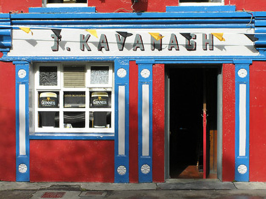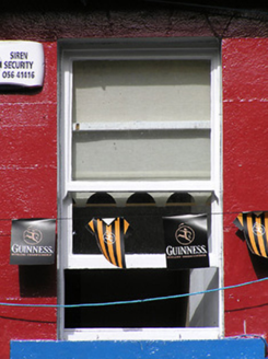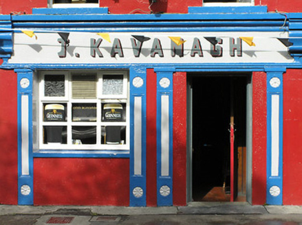Terraced three-bay two-storey house, c.1800, possibly originally two separate two-bay two-storey (west) and single-bay two-storey (east) houses. Extensively renovated, c.1900, with pubfront inserted to left ground floor. Part refenestrated. Pitched slate roof with clay ridge tiles, red brick Running bond chimney stacks, and replacement uPVC rainwater goods on rendered eaves. Painted rendered, ruled and lined walls. Square-headed window openings with painted cut-stone sills, and replacement one-over-one timber sash windows, c.1900. Square-headed door opening with timber panelled door. Rendered pubfront, c.1900, to left ground floor with panelled pilasters having rosette motifs, replacement timber window having casement sections, timber panelled door, fascia having decorative consoles, and moulded cornice. Road fronted.