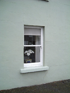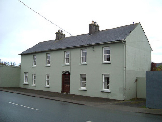 Detached five-bay two-storey house, c.1875. Renovated, c.1950. Pitched slate roof with clay ridge tiles, rendered chimney stacks, and cast-iron rainwater goods on rendered eaves having iron ties. Painted rendered, ruled and lined walls. Square-headed window openings (square-headed window opening inserted to left ground floor, c.1950) with painted cut-stone sills, and one-over-one timber sash windows having fixed-pane (two-light) timber window to additional opening. Segmental-headed door opening with replacement fluted timber doorcase, and replacement glazed timber panelled door retaining fanlight. Interior with timber panelled shutters to window openings. Set back from line of road.