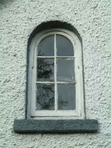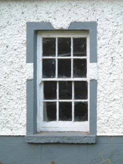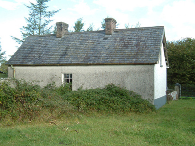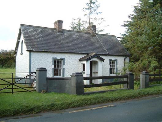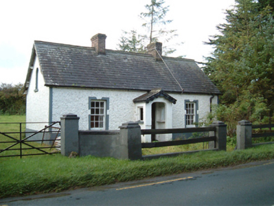 Detached three-bay single-storey house with dormer attic, extant 1900, on a T-shaped plan centred on single-bay single-storey gabled projecting lower porch. Now disused. Pitched slate roof; pitched (gabled) slate roof (porch), roll moulded clay ridge tiles, paired red brick Running bond central chimney stacks having corbelled stepped stringcourses below capping, timber bargeboards to gables on timber purlins with decorative timber bargeboards to gable (porch), and cast-iron rainwater goods on roughcast eaves retaining cast-iron downpipes. Roughcast walls bellcast over inscribed rendered plinth with rendered flush strips to corners. Elliptical-headed opening (porch). Square-headed window openings ("cheeks") with sills, and concealed dressings framing timber fittings. Square-headed door opening into house with concealed dressings framing timber panelled door. Square-headed window openings with sills, and roughcast panelled rendered flush surrounds framing six-over-six timber sash windows. Round-headed window openings (gables) with sills, and concealed dressings framing pivot fittings having square glazing bars. Square-headed central window opening to rear (south) elevation with concealed dressings framing six-over-six timber sash window. Set back from line of road with rendered piers to perimeter having stepped capping supporting iron gate.
