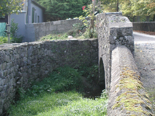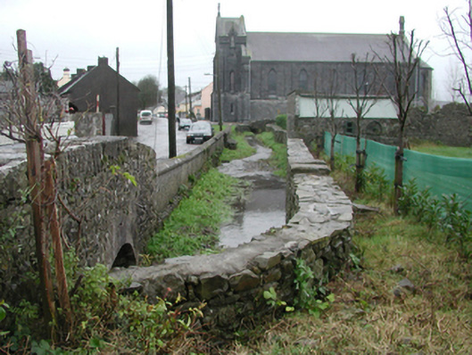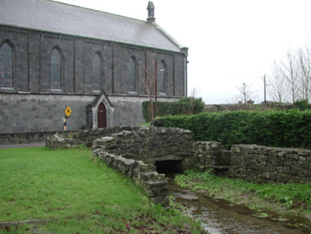 Pair of bridges including (north): Two-span "clapper" bridge over stream, extant 1839. Now disused. Rubble limestone walls with rubble stone coping to parapets. Pair of flat spans with rough hewn limestone lintels. Sited spanning stream; (south): Single-arch road bridge over stream, extant 1900. Rubble limestone wall (east) with remains of hammered limestone soldier course coping to parapet. Single round or segmental arch with cut-or hammered limestone voussoirs. Sited spanning stream.