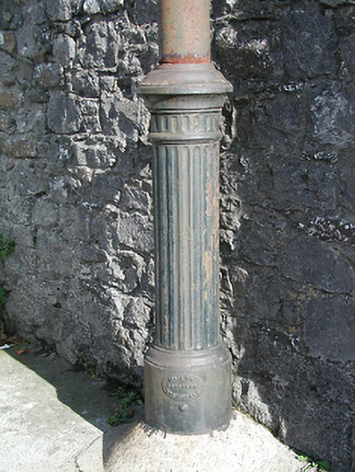 Making a pleasing, if subtle impression in the streetscape a vent pipe supplied by the Drogheda Ironworks foundry represents an important artefact of early mass-produced cast-iron ware. However, while refined detailing betrays the concerns with aesthetic effects the vent pipe remains of primary importance for the associations with the development of a sewage system in Freshford in the late nineteenth or early twentieth century.