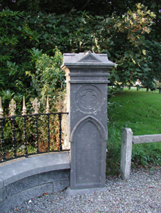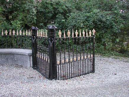 An elegantly-appointed gateway making a pleasing impression on the aesthetic appeal of the streetscape of Castlecomer Road. Finely-carved Gothic-style piers display expert stone masonry while early iron work incorporating distinctive finials enhances the artistic design significance of the composition.