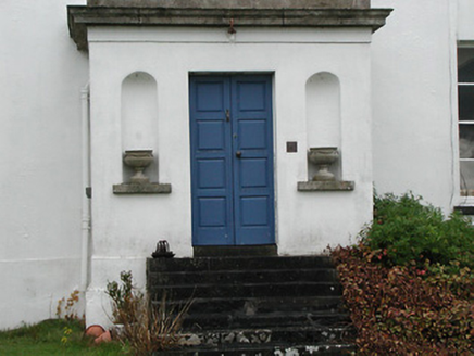 Detached three-bay two-storey over basement house, extant 1795, on a T-shaped plan centred on single-bay single-storey flat-roofed projecting porch to ground floor; two-bay single-storey flush wing (north). Occupied, 1901; 1911. Pitched double-pile (M-profile) slate roof with clay ridge tiles, rendered chimney stacks on axis with ridge having concrete capping supporting terracotta or yellow terracotta pots, decorative timber bargeboards to gables, and replacement uPVC rainwater goods on slightly overhanging eaves; hipped and pitched slate roof (wing), clay or terracotta ridge tiles with rendered chimney stack (north) having concrete capping supporting terracotta octagonal pot, and cast-iron rainwater goods on rendered eaves with cast-iron downpipes. Replacement cement rendered coursed rubble limestone walls on cement rendered plinth with concealed tooled rough hewn limestone flush quoins to corners. Round-headed niches centred on square-headed door opening approached by flight of seven cut-limestone steps with concealed dressings framing replacement timber panelled double doors. Square-headed window openings ("cheeks") with cut-limestone sills, and concealed dressings framing eight-over-eight timber sash windows. Square-headed window openings with cut-limestone sills, and concealed dressings framing six-over-six (ground floor) or three-over-six (first floor) timber sash windows without horns. Square-headed window openings (wing) with cut-limestone sills, and concealed dressings framing six-over-six timber sash windows without horns. Interior including (ground floor): central hall retaining carved timber surrounds to door openings framing timber panelled doors, moulded plasterwork cornice to ceiling, staircase on a dog leg plan with "spindle" balusters supporting carved timber banister terminating in turned timber newel, carved timber surround to window opening to half-landing, carved timber surrounds to door openings to landing framing timber panelled doors with carved timber surround to window opening framing timber panelled shutters on panelled riser, and moulded plasterwork cornice to ceiling centred on decorative plasterwork ceiling rose; reception room (south) retaining carved timber surround to door opening framing timber panelled door with carved timber surrounds to window openings framing timber panelled shutters on panelled risers, and moulded plasterwork cornice to ceiling; drawing room (north) retaining carved timber surround to door opening framing timber panelled door with carved timber surround to window opening framing timber panelled shutters on panelled risers, and moulded plasterwork cornice to ceiling; dining room (wing) retaining carved timber surround to door opening framing timber panelled door with carved timber surrounds to window openings framing timber panelled shutters on panelled risers, and picture railing below decorative plasterwork cornice to ceiling; and carved timber surrounds to door openings to remainder framing timber panelled doors with carved timber surrounds to window openings framing timber panelled shutters on panelled risers. Set in landscaped grounds.