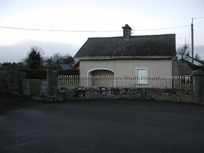 Detached two-bay single-storey gate lodge with dormer attic, built 1850, on a rectangular plan. Occupied, 1901; 1911. Now disused. Pitched slate roof with clay ridge tiles centred on rendered chimney stack having concrete capping supporting terracotta pots, timber bargeboards on timber purlins, and cast-iron rainwater goods on timber eaves boards on rendered eaves retaining cast-iron downpipe. Rendered walls bellcast over rendered plinth. Segmental-headed open internal porch (west) with rendered flush surround. Square-headed window opening (east) with sill, and rendered flush surround with fitting now boarded up. Square-headed window openings (gables) with sills, and rendered flush surrounds with fittings now boarded up. Set back from line of road at entrance to grounds of Rich View.