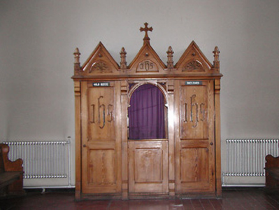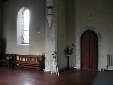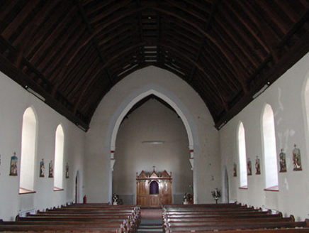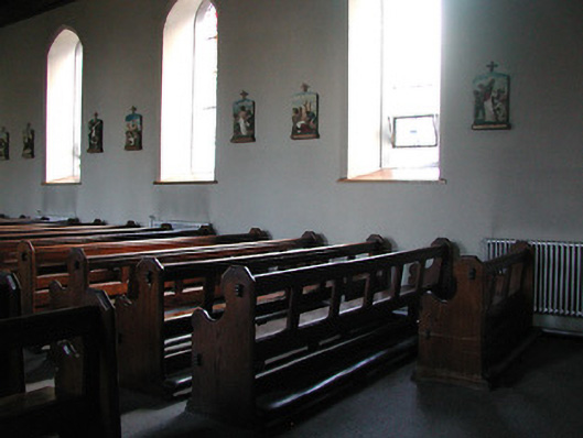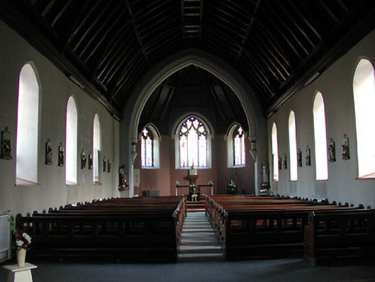 Detached seven-bay double-height Gothic Revival Catholic chapel, built 1893, comprising five-bay double-height nave with single-bay single-storey gabled projecting porches to north and to south, single-bay double-height lower bay to south-west, and single-bay double-height chancel to north-east on a polygonal plan having single-bay single-storey sacristy to north. Pitched slate roofs (gabled to porches; half-polygonal to chancel with gablets over window openings) with profiled terracotta ridge tiles, sandstone ashlar chamfered chimney stack to sacristy on carved stringcourse having profiled cornice, cut-stone coping to gables having buttressed gabled bellcote to apex to north-east (with pointed-arch aperture on moulded stringcourse having chamfered reveals, bell now missing, and coping having cross finial to apex), and cast-iron rainwater goods on carved sandstone concave eaves. Broken coursed rock-faced cut-limestone walls with sandstone ashlar dressings including quoins to corners (chamfered to porches), gabled stepped buttresses to north-east, and stepped clasping buttresses to chancel. Pointed-arch window openings with cut-sandstone block-and-start surrounds having chamfered reveals, and fixed-pane fittings having leaded stained glass panels. Pointed-arch window openings to chancel on cut-sandstone sill course with cut-sandstone block-and-start surrounds having chamfered reveals, hood mouldings over, Y-mullions and tracery forming bipartite trefoil-headed arrangement (tripartite arrangement to north-east) having quatrefoils over, and fixed-pane fittings having leaded stained glass panels. Pointed-arch door openings with cut-sandstone block-and-start surrounds having profiled chamfered reveals, and tongue-and-groove timber panelled double doors. Square-headed window openings to sacristy with cut-sandstone block-and-start surround having chamfered reveals, mullions, and fixed-pane fittings having leaded glazing. Full-height interior open into roof with Gothic-style timber panelled confessional box to south-west, timber pews, exposed timber roof construction, and pointed-arch arches to south-west and to north-east (chancel) having chamfered reveals leading to moulded archivolt on decorative corbels. Set back from road in grounds shared with Saint Canice's Hospital.