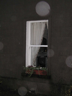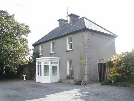 Detached three-bay two-storey house, c.1875, possibly incorporating fabric of earlier house, pre-1840, on site with single-bay single-storey flat-roofed projecting glazed porch to centre ground floor on a half-octagonal plan. Hipped slate roof with terracotta ridge tiles, paired rendered chimney stacks, and cast-iron rainwater goods on rendered eaves having iron brackets. Flat roof to porch not visible behind parapet. Unpainted rendered, ruled and lined walls with rendered quoins to corners. Square-headed window openings with cut-limestone sills, rendered surrounds, and one-over-one timber sash windows. Square-headed openings to porch with fixed-pane (one two-light) timber windows on panelled risers having overlights, glazed timber panelled door having overlight, and colonette mullions supporting moulded course having frieze over extending into moulded cornice parapet. Square-headed door opening to house with glazed timber panelled door having overlight. Interior with timber panelled shutters to window openings. Set back from road in own grounds with gravel forecourt, and hedge boundary to perimeter of site having cast-iron colonette piers supporting wrought iron double gates.