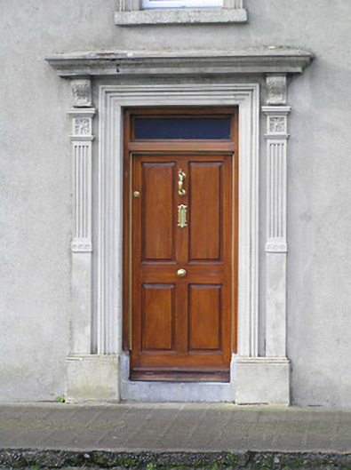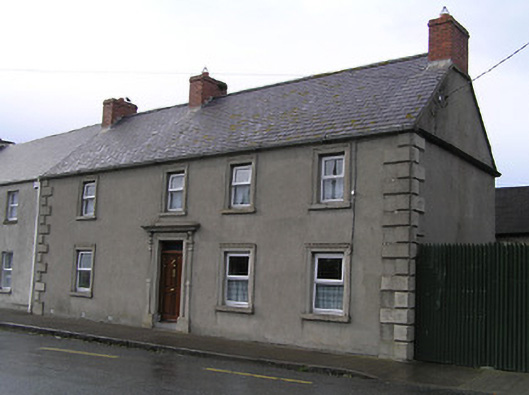 Attached four-bay two-storey house, c.1850, originally detached. Refenestrated. Pitched slate roof with clay ridge tiles, red brick Running bond chimney stacks, and replacement uPVC rainwater goods. Unpainted rendered walls with rendered quoins to ends. Square-headed window openings with cut-limestone sills, moulded rendered surrounds, and replacement uPVC casement windows. Square-headed door opening with rendered fluted pilaster surround supporting entablature on consoles, and timber panelled door having overlight. Road fronted with concrete footpath to front.