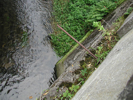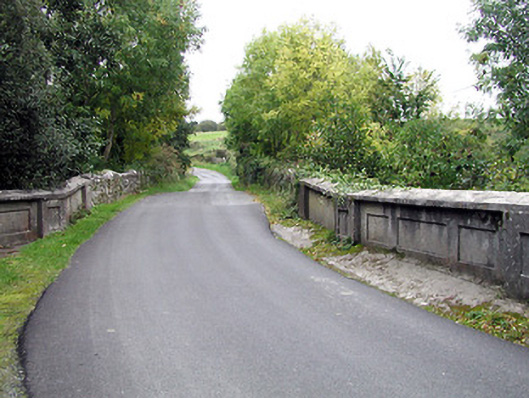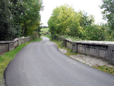 Single-span reinforced concrete road bridge over stream, c.1925, possibly incorporating fabric of earlier bridge, c.1825. Unpainted rendered walls with panelled piers flanking panelled parapet having concrete coping, and random rubble stone flanking walls. Single reinforced concrete lintel span. Sited spanning tributary of River Barrow with overgrown banks to stream.