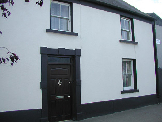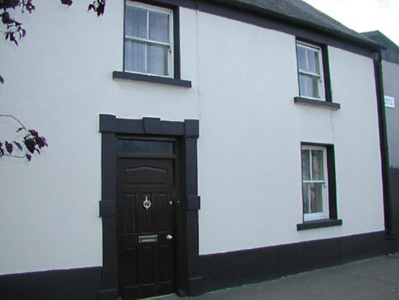 Detached four-bay two-storey house, c.1875. Pitched slate roof with clay ridge tiles, red brick Running bond chimney stacks, rendered coping, and cast-iron rainwater goods on rendered eaves. Painted rendered walls with rendered strips to ends, and rendered band to eaves. Square-headed window openings with cut-stone sills, and two-over-two timber sash windows. Square-headed door opening with rendered block-and-start surround, and replacement timber panelled door, c.1975, having overlight. Road fronted with concrete footpath to front.