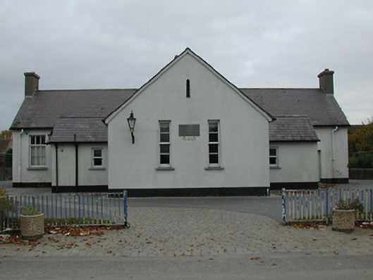 Detached five-bay single-storey national school, dated 1914, on a symmetrical T-shaped plan comprising five-bay single-storey main block with single-bay (three-bay deep) single-storey gabled projecting central range having single-bay single-storey lower flanking bays. Pitched slate roofs on a T-shaped plan (pitched to lower flanking bays) with clay and terracotta ridge tiles, rendered chimney stacks, rendered bargeboards to gables, and cast-iron rainwater goods on exposed timber eaves. Painted rendered walls with cut-limestone date stone/plaque. Square-headed window openings with cut-stone sills, three-over-six timber sash windows to main block having three-over-nine timber sash windows to side elevations, two-over-two timber sash windows to projecting block having timber casement windows to side elevations, and one-over-one timber sash windows to lower flanking bays. Square-headed door openings with glazed tongue-and-groove timber panelled doors. Set back from road in own grounds with random rubble stone boundary wall to perimeter of site having cut-stone coping, and unpainted rendered piers.