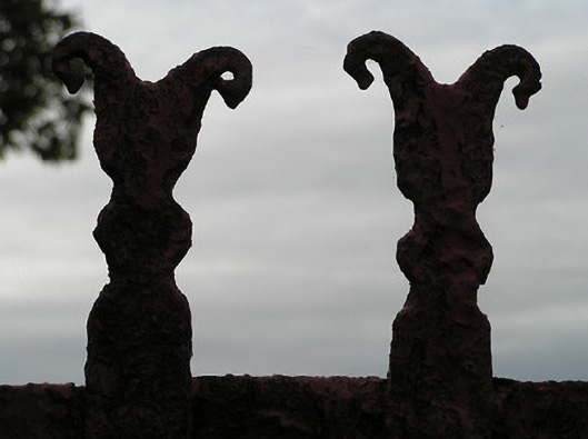 A gateway of simple, almost rustic quality incorporating attractive wrought iron work forming an appealing, if subtle feature in the landscape.