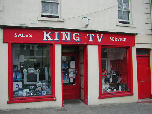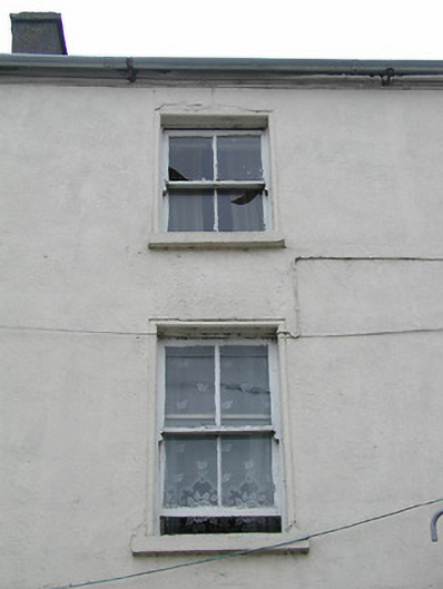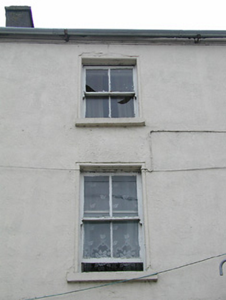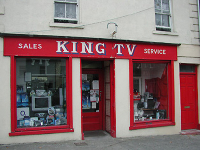 Terraced two-bay three-storey house, c.1825. Renovated, c.1900, with shopfront inserted to ground floor. Reroofed. Pitched roof with replacement artificial slate, clay ridge tiles, rendered chimney stacks, and iron rainwater goods on rendered eaves. Painted rendered walls with rendered quoins to ends to upper floors. Square-headed window openings with cut-stone sills, moulded reveals, and two-over-two timber sash windows. Square-headed door opening with timber panelled door having overlight. Timber shopfront, c.1900, to ground floor on symmetrical plan with fixed-pane timber windows (having glazed timber display screens behind), iron mesh double gates leading to glazed timber panelled door having overlight, and fascia over. Interior with timber panelled reveals/shutters to window openings. Road fronted with concrete footpath to front.