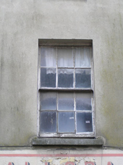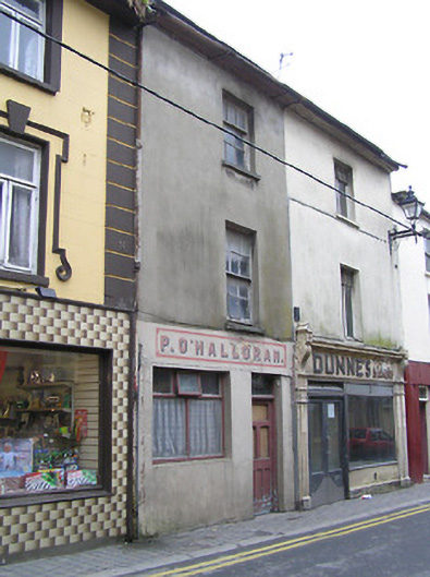 Terraced single-bay three-storey house, c.1825. Renovated, c.1950, with opening to ground floor remodelled to accommodate commercial use. Now disused. One of a pair. Pitched (shared) slate roof with clay ridge tiles, remains of rendered chimney stack (truncated), and cast-iron rainwater goods on overhanging rendered eaves having iron ties. Painted rendered wall to ground floor with unpainted rendered wall to upper floors. Square-headed window openings with cut-limestone sills, six-over-six (first floor) and three-over-six (top floor) timber sash windows. Square-headed window opening to ground floor remodelled, c.1950, with fixed-pane timber window having casement overlights. Square-headed door opening with replacement glazed timber panelled door, c.1950, having overlight. Interior with timber panelled shutters to window openings. Road fronted with concrete brick cobbled footpath to front.