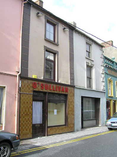 Terraced single-bay three-storey house, c.1825. Renovated, c.1975, with openings to ground floor remodelled to accommodate commercial use. Refenestrated. Now disused to ground floor. One of a terrace of four. Pitched (shared) slate roof with clay ridge tiles, red brick Running bond squat (shared) chimney stacks, and iron rainwater goods on rendered eaves. Painted rendered, ruled and lined wall with rendered channelled piers to ends. Square-headed window openings with replacement concrete sills, rendered lugged surrounds, and replacement timber-laminated uPVC casement windows. Square-headed openings to ground floor remodelled, c.1975, in tiled frontage with fixed-pane timber window, glazed timber door, overlights, raised lettering over, and dentilated 'cornice'. Road fronted with concrete brick cobbled footpath to front.