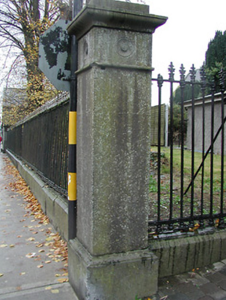 Boundary wall, c.1800, comprising sections of wrought iron railings on cut-limestone chamfered plinth having cast-iron finials, and limestone ashlar piers with frieze between courses supporting carved cornices having cut-limestone capping. Road fronted forming boundary to Saint Mary's Church.