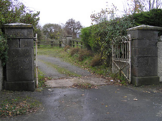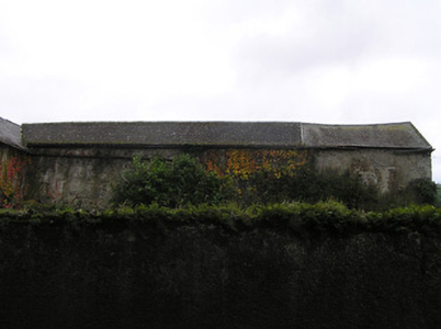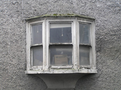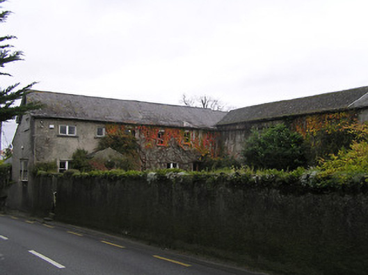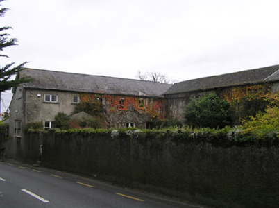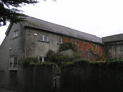 Detached four-bay two-storey house, c.1850, possibly over basement with single-bay single-storey gabled projecting porch to ground floor, and single-bay two-storey over raised base side (north-west) elevation having canted bay window to ground floor in form of oriel window. Mostly refenestrated, c.1950. Now disused. Pitched slate roof (gabled to porch) with clay ridge tiles, timber eaves to gable to side (north-west) elevation, and cast-iron rainwater goods on rendered eaves. Part ivy-clad unpainted roughcast walls. Square-headed window openings (including to canted bay/oriel window on rendered jetty; one in bipartite arrangement) with cut-limestone sills, rendered surrounds, and replacement timber casement windows, c.1950, retaining some one-over-one timber sash windows throughout (including to canted bay/oriel window). Square-headed door opening with glazed timber panelled door. Set in own grounds perpendicular to road with unpainted fine roughcast boundary wall to perimeter of site having rubble stone coping, wrought iron gate, and side (north-west) elevation fronting on to road. (ii) Attached four-bay two-storey outbuilding, c.1850, perpendicular to south-east. Part reroofed, c.1950. Now disused. Pitched slate roof with section of replacement artificial slate, c.1950, clay ridge tiles, and iron rainwater goods on rendered eaves. Ivy-clad remains of unpainted rendered walls over random rubble stone construction. Openings not visible with outline of square-headed window openings to first floor having no sills, and timber lintels (now blocked-up with random rubble stone infill).