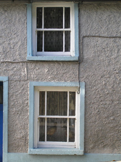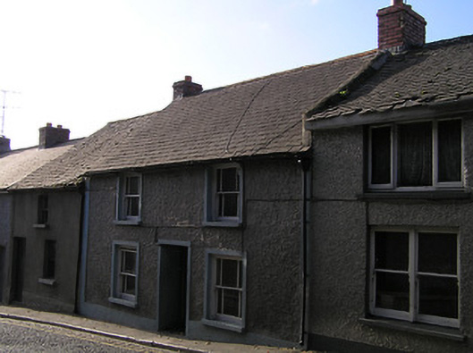 Terraced three-bay two-storey house, c.1850. Pitched slate roof with clay ridge tiles, red brick Running bond (shared) chimney stacks, rendered coping to party wall, and cast-iron rainwater goods on rendered eaves. Painted roughcast walls with rendered strips to ends. Square-headed window openings with cut-stone sills, rendered surrounds, and one-over-one timber sash windows having margins. Square-headed door opening with rendered surround, and glazed tongue-and-groove timber panelled door. Road fronted with concrete footpath to front.