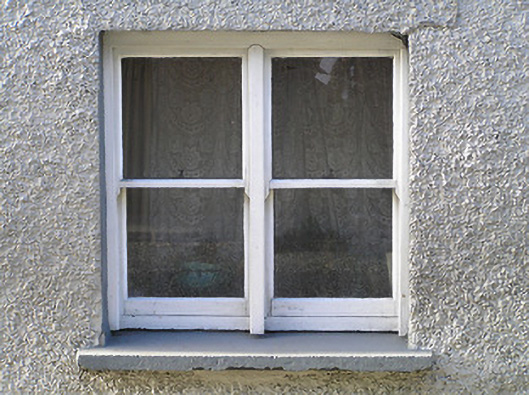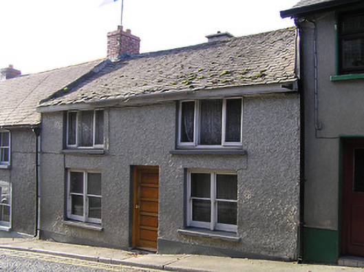 Terraced three-bay two-storey house, c.1850. Part refenestrated, c.1975, possibly with some openings remodelled. Pitched slate roof with clay ridge tiles, red brick Running bond (shared) and rendered chimney stacks, and no rainwater goods on timber eaves. Unpainted roughcast walls (possibly replacement, c.1975). Square-headed window openings (in bipartite arrangement to ground floor; possibly remodelled to first floor, c.1975) with cut-stone sills (replacement concrete sills, c.1975, to first floor), and one-over-one timber sash windows having replacement timber casement windows, c.1975, to first floor. Square-headed door opening with replacement timber panelled door, c.1975. Road fronted with concrete footpath to front.