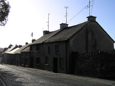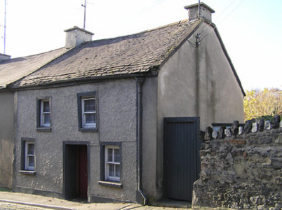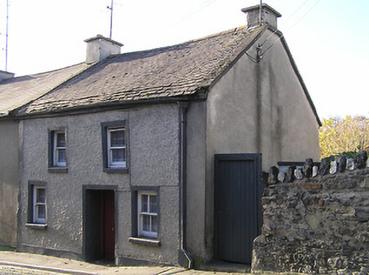 End-of-terrace three-bay two-storey house, c.1850. Pitched slate roof with clay ridge tiles, rendered chimney stacks, rendered coping, and cast-iron rainwater goods on rendered eaves. Unpainted roughcast wall to front (east) elevation with rendered strips to ends, and unpainted rendered walls to remainder. Square-headed window openings with cut-stone sills, rendered surrounds, and one-over-one timber sash windows having two-over-two timber sash window to right ground floor. Square-headed door opening with rendered surround, and timber panelled door. Road fronted with concrete footpath to front.