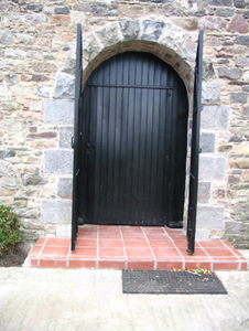 Corn mill complex, c.1775, including: (i) Detached four-bay two-storey over basement mill with half-attic. Extended, c.1850, comprising five-bay two-storey parallel range along rear (south) elevation forming single-bay two-storey recessed end bay to right. Decommissioned, pre-1948. In use as offices, post-1948. Renovated, c.1975, with some openings remodelled. In use as gallery, pre-2002. Extensively renovated, 2002, to accommodate continued residential use. Pitched slate roofs with clay ridge tiles, rendered chimney stacks, rendered coping, rooflights, and cast-iron rainwater goods on rendered eaves. Random rubble limestone walls to original block with cut-limestone quoins to corners, iron tie bars, and painted replacement rendered walls, 2002, to additional range. Camber-headed window openings (some remodelled, c.1975) with no sills (some having chamfered sills), tooled cut-limestone voussoirs (rendered voussoirs to additional range), and replacement timber fittings, 2002. Round-headed door opening with tiled step, tooled cut-limestone block-and-start surround having rock-faced cut-limestone voussoirs, and tongue-and-groove timber panelled door. Interior retaining vaulting to basement, and timber floors to upper floors. Set back from road in own grounds.
