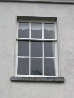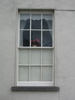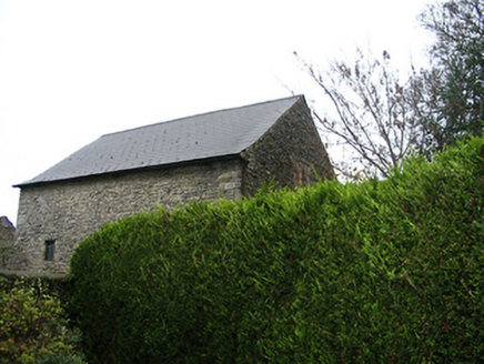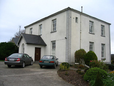 Detached three-bay two-storey over basement Board of First Fruits glebe house, built 1806, with single-bay single-storey gabled projecting porch to centre ground floor, three-bay two-storey side elevations, and four-bay two-storey rear (south-east) elevation. In use as rectory, 1948-9. Renovated. Now in private residential use. Hipped slate roof (gabled to porch) with clay ridge tiles, rendered chimney stack on axis with ridge, decorative timber bargeboards to porch having remains of finial to apex, and cast-iron rainwater goods on rendered eaves. Painted rendered walls with rendered quoined piers to corners. Square-headed window openings (round-headed window opening to porch) with cut-stone sills, ten-over-ten (basement), six-over-six (ground floor) and three-over-six (first floor) timber sash windows (some possibly replacement with three-over-six timber sash window to porch having fanlight). Square-headed door opening with two cut-limestone steps having cast-iron bootscraper, and replacement timber panelled door. Interior with timber panelled shutters to window openings. Set back from road in own grounds on a slightly elevated site with landscaped grounds to site. (ii) Detached three-bay single-storey outbuilding with half-attic, post-1806, to east. Reroofed. Pitched roof with replacement artificial slate, clay ridge tiles, and cast-iron rainwater goods on rubble stone eaves. Random rubble stone walls. Square-headed window openings with no sills, and timber fittings.