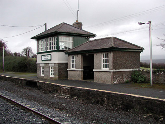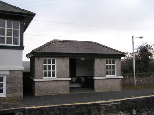 Detached three-bay single-storey passenger shelter, c.1875. Hipped slate roof with clay ridge tiles, and cast-iron rainwater goods on timber eaves. Unpainted roughcast walls with rendered stringcourse. Square-headed window openings with rendered sills forming sill/stringcourse, and fixed-pane timber windows. Square-headed door opening with no fittings. Set in grounds shared with Thomastown Railway Station on platform.