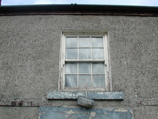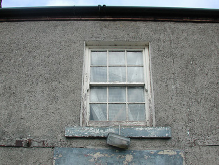 Terraced three-bay two-storey house, c.1775. Pitched slate roof with clay ridge tiles, rendered chimney stack, and cast-iron rainwater goods on timber eaves board. Unpainted roughcast walls with iron tie bars. Square-headed window openings with cut-stone sills, and six-over-six timber sash windows having wrought iron bars to ground floor. Square-headed door opening with cut-stone surround, and tongue-and-groove timber panelled door. Road fronted with concrete footpath to front.