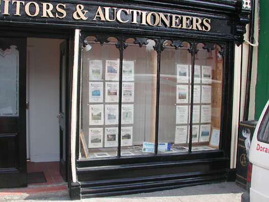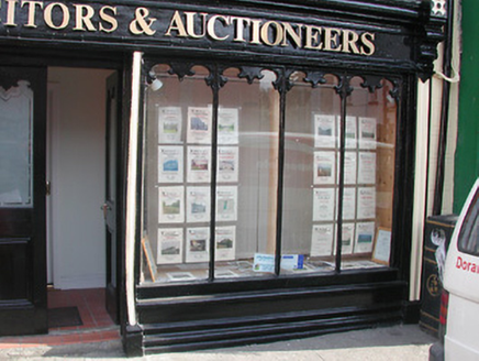Terraced four-bay two-storey house, c.1825, with square-headed carriageway to left ground floor. Extensively renovated, c.1925, with shopfront inserted to ground floor. Now in use as offices. Pitched roof with replacement artificial slate, c.1925, clay ridge tiles, red brick Running bond (shared) chimney stack having paired yellow terracotta octagonal pots, and cast-iron rainwater goods on rendered eaves having iron brackets. Painted inscribed rendered walls. Square-headed window openings with cut-stone sills, inscribed voussoirs having keystones, and replacement one-over-one timber sash windows, c.1925. Timber shopfront, c.1925, to ground floor with panelled pilasters, fixed-pane (four-light) timber display window having profiled detailing to lights, glazed timber panelled double doors, glazed timber panelled door to house having overlight, fascia over having carved consoles, and moulded cornice. Square-headed carriageway to left ground floor (forming part of shopfront) with timber panelled double doors. Road fronted with concrete footpath to front.