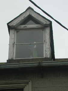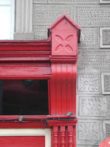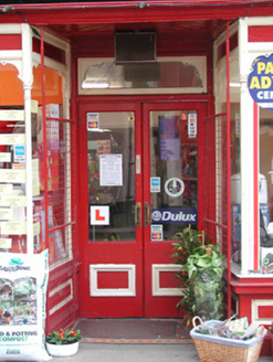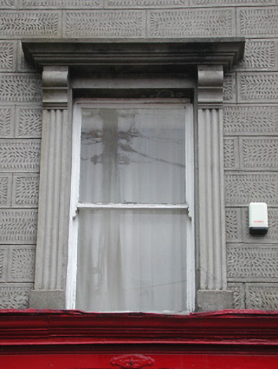 End-of-terrace three-bay three-storey house with dormer attic, c.1900, possibly incorporating fabric of earlier house, pre-1840, on site with shopfront to ground floor. Pitched slate roof (gabled to dormer attic window) with clay ridge tiles, rendered and red brick Running bond (shared) chimney stacks, rendered coping, timber bargeboards to dormer attic window, and cast-iron rainwater goods on rendered eaves having iron brackets. Unpainted tooled rendered, ruled and lined walls with tooled rendered panelled quoins to corners. Square-headed window openings with rendered sills, fluted pilaster surrounds to first floor supporting entablatures on consoles, moulded rendered surrounds to remainder, and one-over-one timber sash windows having fixed-pane timber window to dormer attic with fixed-pane cheeks. Timber shopfront to ground floor on a symmetrical plan with pilasters having grouped 'balusters' on panelled plinths, fixed-pane timber display windows on panelled risers incorporating corner colonettes having spandrels supporting panelled apron, glazed timber panelled double doors on decorative clay-tiled threshold having overlight, fascia over having decorative consoles, and moulded cornice. Interior with timber panelled shutters to window openings. Road fronted with concrete footpath to front, and laneway running along side (south) elevation.