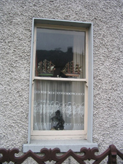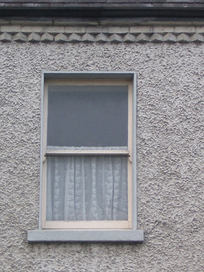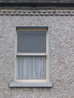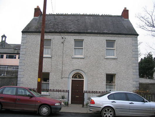 Detached three-bay two-storey house, c.1875, on a T-shaped plan possibly with dormer attic with single-bay two-storey lower return to north-east. Pitched slate roof (pitched to return) with decorative clay ridge tiles, red brick Running bond chimney stacks, and cast-iron rainwater goods on cut-limestone eaves (timber eaves to return). Unpainted roughcast walls with painted rendered quoins to ends, and painted red brick course to eaves on dentilated course. Square-headed window openings with rendered sills, and one-over-one timber sash windows. Round-headed door opening in round-headed shallow recess with limestone flagged threshold, and replacement timber panelled door having overlight. Interior with timber panelled reveals/shutters to window openings. Set back from line of road with sections of iron railings to front having decorative cresting, and iron gate.