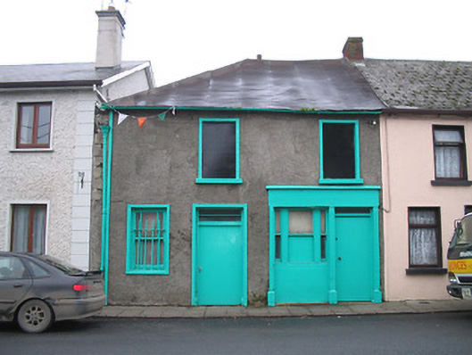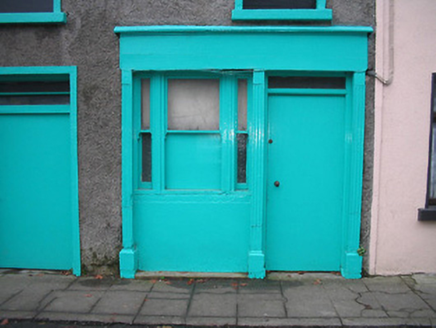 Terraced two-bay two-storey house, c.1825, originally end-of-terrace. Renovated, c.1875, with shopfront inserted to right ground floor. Now disused. Hipped and pitched (shared) roof with felt protective covering, red brick Running bond (shared) chimney stack, and cast-iron rainwater goods. Unpainted fine roughcast walls with concealed dressed granite quoins to corners. Square-headed window openings with cut-stone sills, rendered surrounds, and one-over-one timber sash window to ground floor having margins (remainder now boarded-up) with wrought iron bars. Square-headed door opening with rendered surround, and timber door having overlight. Timber shopfront, c.1875, to right ground floor with inscribed pilasters, one-over-one timber sash window in tripartite arrangement having one-over-one sidelights, timber door having overlight, and fascia over having coping. Road fronted with concrete flagged footpath to front.