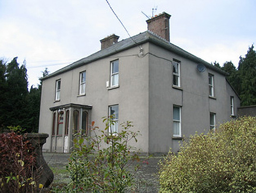 Detached three-bay two-storey parochial house, post-1903, with single-bay single-storey flat-roofed projecting porch to centre ground floor, two-bay two-storey side elevations, and single-bay two-storey lean-to lower return to north. Hipped slate roof (continuing into lean-to to return) with clay ridge tiles, red brick Running bond chimney stacks on axis with ridge having profiled coping on dentilated course, and cast-iron rainwater goods on rendered eaves. Flat concrete roof to porch with moulded cornice. Unpainted rendered walls with rendered chamfered piers to porch. Square-headed window openings with cut-stone sills, and one-over-one timber sash windows. Tudor-headed window openings to porch in three-part arrangement with concrete sills, and timber casement window having fixed-pane sidelights. Tudor-headed door opening to porch with replacement glazed timber door having overlight. Interior with timber panelled shutters to window openings. Set back from road in own grounds on an elevated site with landscaped grounds having random rubble granite boundary wall, rock-faced cut-granite piers having cut-stone capping, and iron double gates.