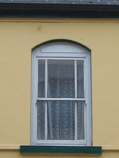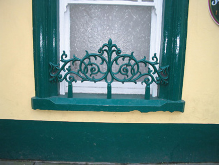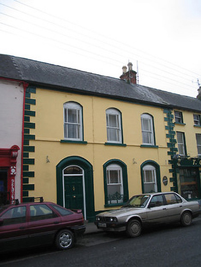 Terraced three-bay two-storey house, c.1875. Pitched slate roof with clay ridge tiles, red brick Running bond (shared) chimney stack having paired yellow terracotta octagonal pots, and cast-iron rainwater goods on rendered eaves. Painted rendered walls with rendered stringcourse to first floor, and rendered quoins to ends. Square-headed window openings in segmental-headed recesses with rendered sills, moulded rendered surrounds to ground floor, and one-over-one timber sash windows having margins (no margins to lower panes to ground floor) with wrought iron sill guards to ground floor. Segmental-headed door opening with cut-limestone step, moulded rendered surround, and replacement timber panelled door, c.1975, having overlight. Interior with timber panelled shutters to window openings. Road fronted with concrete flagged footpath to front.