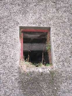 Attached five-bay four-storey warehouse, c.1850, originally detached with two-bay three-storey side elevations. Now disused and derelict. Hipped slate roof with iron ridges, pitched corrugated-iron-clad vent to apex, and cast-iron rainwater goods on rendered eaves. Unpainted roughcast walls over random rubble limestone construction. Square-headed window openings with no sills, and remains of timber fittings with some having wrought iron bars. Set in own grounds perpendicular to road with side (south) elevation fronting on to road.