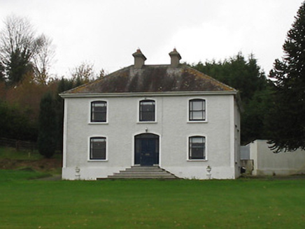 Detached three-bay two-storey house, post-1903. Hipped slate roof with clay ridge tiles, rendered chimney stacks, and cast-iron rainwater goods on rendered eaves. Painted roughcast walls with rendered strips to corners. Square-headed window openings in camber-headed recesses with painted concrete sills, rendered surrounds, and one-over-one timber sash windows having margins. Camber-headed door opening with six steps, rendered surround, timber panelled door having sidelights on panelled risers, and overlight. Set back from road in own grounds.