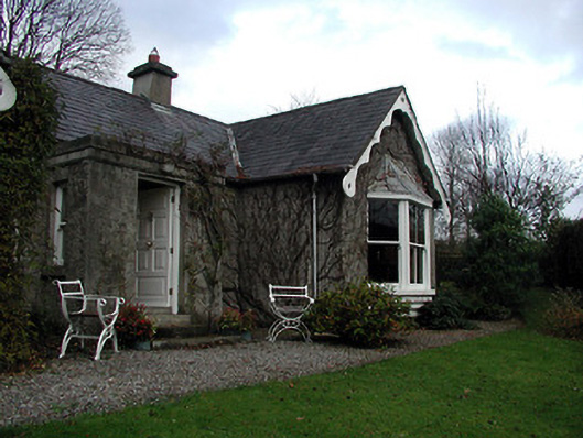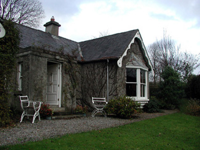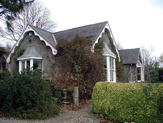 Detached three-bay single-storey house, c.1900, on U-shaped plan comprising single-bay single-storey recessed central bay having single-bay single-storey flat-roofed projecting porch, and single-bay single-storey gabled projecting flanking end bays having canted bay windows. Pitched slate roofs on a U-shaped plan with clay ridge tiles, rendered chimney stacks, decorative timber bargeboards to gables, and cast-iron rainwater goods on timber eaves. Flat roof to porch not visible behind parapet. Ivy-clad unpainted roughcast walls with slight batter to sections, and rendered coping to parapet to porch. Square-headed window openings to canted bay windows on stepped bases with two-over-two timber sash windows having one-over-one sidelights, and lead-lined swept roofs over. Square-headed window openings to porch with cut-stone sills, and one-over-one timber sash windows. Square-headed door opening with three-cut-stone steps, and timber panelled door. Set back from line of road with hedge boundary to perimeter of site.