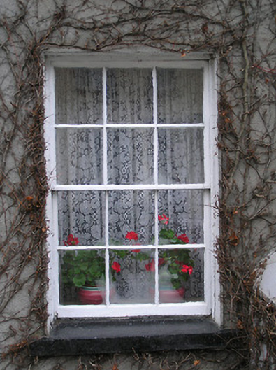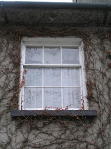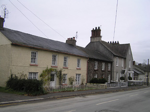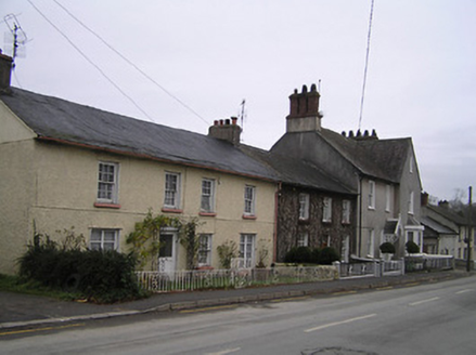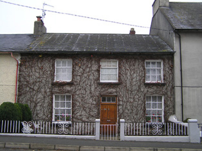 Terraced three-bay two-storey house, c.1825. Pitched slate roof with clay ridge tiles, rendered (shared) and red brick irregular bond chimney stacks, and cast-iron rainwater goods on slightly overhanging rendered eaves. Ivy-clad unpainted rendered walls. Square-headed window openings with cut-stone sills, six-over-six (ground floor) and three-over-six (first floor) timber sash windows. Square-headed door opening with timber panelled door having overlight. Set back from line of road with sections of iron railings to front on painted rendered plinth having painted rendered piers, and iron gate.