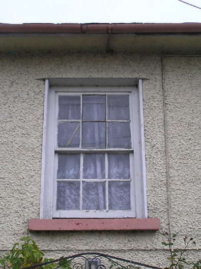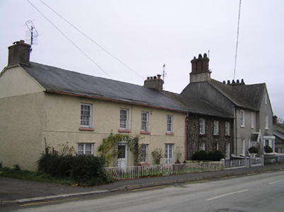 End-of-terrace four-bay two-storey house, c.1825. Renovated, c.1925, with some openings to ground floor remodelled. Pitched slate roof with clay ridge tiles, rendered chimney stacks, and cast-iron rainwater goods on slightly overhanging rendered eaves having iron ties. Painted roughcast walls. Square-headed window openings (some to ground floor remodelled, c.1925) with rendered sills, and six-over-six timber sash windows having replacement timber casement windows, c.1925, to remodelled openings. Square-headed door opening with replacement glazed timber panelled door, c.1975. Set back from line of road with sections of iron railings to front having open work iron piers with iron gate.