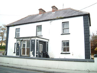 Detached three-bay two-storey house, c.1900, on a T-shaped plan with single-bay single-storey flat-roofed projecting porch to centre ground floor, and two-bay two-storey lower return to north-east. Part refenestrated. Hipped slate roof to main block with pitched slate roof to return having terracotta ridge tiles (decorative to main ridge), red brick Running bond chimney stacks having yellow brick dressings including saw tooth-detailed courses, and cast-iron rainwater goods on rendered eaves. Flat concrete roof to porch. Painted rendered, ruled and lined walls with rendered quoined piers to corners, and rendered panelled piers to porch having dentilated detailing. Square-headed window openings (in bipartite arrangement to porch) with cut-stone sills, and two-over-two timber sash windows (one-over-one timber sash windows to porch) having some replacement uPVC casement windows throughout. Square-headed door opening with concrete step supporting painted rendered parapets, and replacement glazed aluminium door, c.1975. Interior with timber panelled shutters to window openings. Set back from line of road with painted rendered boundary wall to perimeter of site.