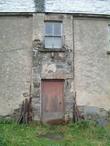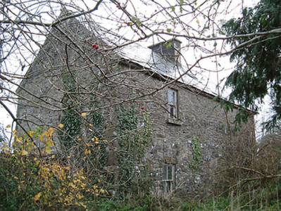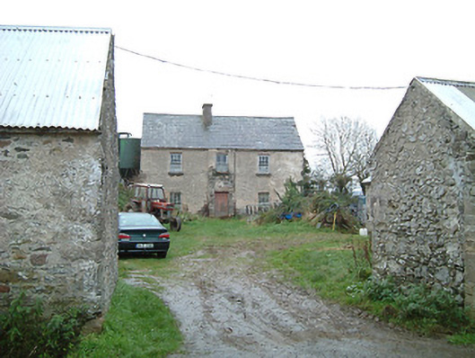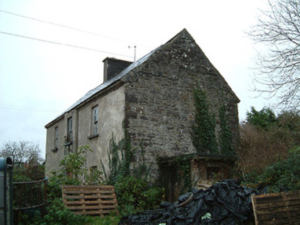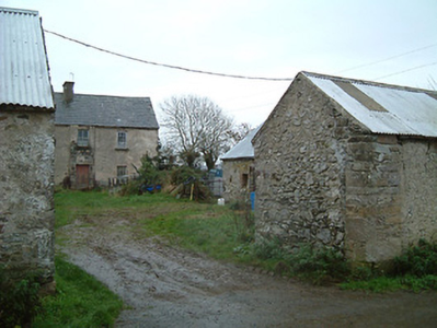 Farmyard complex, c.1825, about a courtyard comprising: (i) Detached three-bay two-storey farmhouse with single-bay two-storey breakfront. Part refenestrated, c.1925. Now disused. Pitched slate roof with clay ridge tiles, rendered chimney stack, and no rainwater goods surviving on rendered eaves. Unpainted lime rendered walls over random rubble stone construction (exposed to side (west) and to rear (south) elevations). Square-headed window openings with cut-stone sills, concealed red brick block-and-start surrounds having soldier course voussoirs, and six-over-six timber sash windows having some replacement two-over-two timber sash windows, c.1925, throughout. Square-headed door opening with red brick voussoirs, and timber boarded door. Set back from road in own grounds with farmyard forecourt. (ii) Detached four-bay single-storey outbuilding perpendicular to west. Part reroofed, c.1975. Now disused and in ruins. Pitched roof (mostly collapsed) with replacement corrugated-iron, c.1975, having remains of slate in sections, iron ridge tiles, and no rainwater goods on squared rubble stone eaves. Random rubble stone walls with remains of unpainted lime render over. Square-headed window opening with no sill, red brick dressings, timber lintel, and no fitting surviving. Square-headed door openings with red brick voussoirs or timber lintels, and timber boarded doors (one now blocked-up with random rubble stone infill). (iii) Detached two-bay single-storey outbuilding to north-west. Reroofed, c.1975. Now disused. Pitched roof with replacement corrugated-iron, c.1975, iron ridge tiles, and no rainwater goods on rubble stone eaves. Random rubble stone walls. Square-headed window opening with rubble stone sill, timber lintel, and fixed-pane timber window. Square-headed door opening with timber lintel, and timber boarded door. (iv) Detached two-bay single-storey outbuilding with attic to north-east with elliptical-headed carriageway to left. Reroofed, c.1975. Now disused. Pitched roof with replacement corrugated-iron, c.1975, iron ridge tiles, and no rainwater goods on squared rubble stone eaves. Random rubble stone walls. Elliptical-headed carriageway to left with rubble stone voussoirs, and timber boarded rolling door.