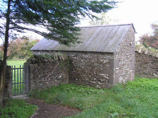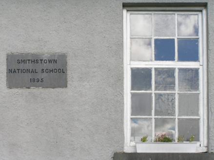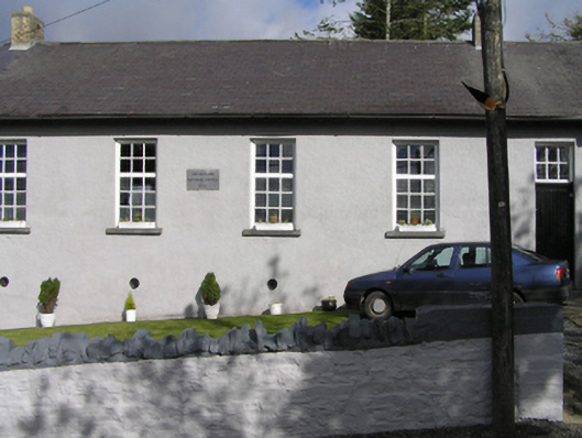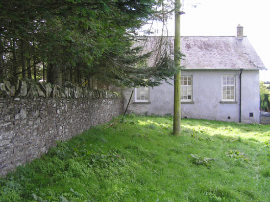 Detached five-bay single-storey national school, dated 1895, on a rectangular plan. Now disused. Pitched slate roof with clay ridge tiles, yellow brick Running bond chimney stacks having chamfered capping supporting yellow terracotta pots, timber bargeboards to gables on thumbnail beaded timber purlins, and cast-iron rainwater goods on exposed timber rafters on slightly overhanging timber boarded eaves retaining cast-iron downpipes. Rendered coursed or snecked limestone walls with concealed flush quoins to corners. Square-headed window openings centred on cut-limestone date stone ("1895") with drag edged dragged cut-limestone sills, and concealed dressings framing timber casement windows. Square-headed door opening (east) with two cut-limestone steps, and concealed dressings framing timber boarded door having overlight. Interior including vestibule (east) with timber boarded wainscoting supporting timber dado rail; carved timber surrounds to door openings into classroom framing timber doors; full-height classroom (west) with timber boarded wainscoting supporting timber dado rail, and exposed Queen post timber roof construction. Set in landscaped grounds.