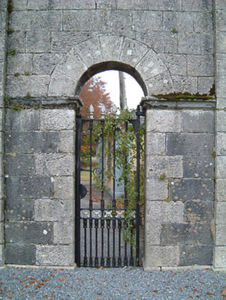 An elegantly-appointed gate screen built to designs prepared by Joseph Maguire (fl. 1860-74) making a dramatic visual statement at the entrance to the grounds of Swifte's Heath: forming a neat group with an attendant gate lodge (12401013/KK-10-13) the resulting ensemble represents a prominent landmark on the road leading from Ballyragget in the north to Kilkenny City in the south. Displaying particularly fine stone masonry throughout the construction in a combination of granite and limestone produces a austere palette enhancing the position of the composition on the side of the road: early iron work incorporating spear-head detailing further enhances the design aspirations of the site.