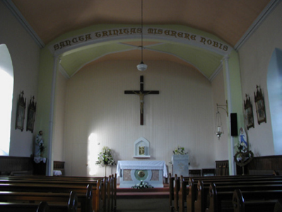 A church erected 'by public subscription' under the aegis of Reverend James Henneberry (1772-1834; cf. 12401505; 12403902) representing an integral component of the early nineteenth-century ecclesiastical heritage of County Kilkenny with the architectural value of the composition, one showing the hallmarks of a period of construction coinciding with the gradual dismantling of the Penal Laws in anticipation of the Roman Catholic Relief Act, 1829, suggested by such attributes as the rectilinear "barn" plan form, aligned along a liturgically-incorrect axis; the feint battered silhouette; the "pointed" profile of the openings underpinning a contemporary Georgian Gothic theme; and the stepped tower making a pleasing visual statement as a prominent eye-catcher in the landscape. Having been well maintained, the elementary form and massing survive intact together with quantities of the original fabric, both to the exterior and to the interior reordered (----) in accordance with the liturgical reforms sanctioned by the Second Ecumenical Council of the Vatican (1962-5) where, following the removal of '[a] Gothick reredos with a painting in the centre surrounded by crenelations and clusters of columns like [Saint Mary's Catholic Church (1822) in] Ballysokill', contemporary joinery; stained glass; and decorative plasterwork enrichments, all highlight the modest artistic potential of a church making a pleasing visual statement in a rural village street scene. NOTE: A standardised Commonwealth War Graves Commission headstone marks the burial place of Sergeant John Deely (d. 1915) of the Royal Irish Regiment.