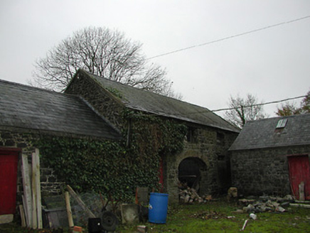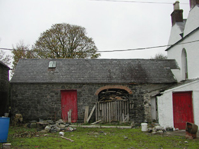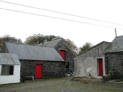 Farmyard complex, c.1850, possibly incorporating fabric of earlier ranges, pre-1840, on site including: (i) Attached two-bay single-storey coach house with elliptical-headed carriageway to right. Pitched slate roof with clay ridge tiles, rooflight, and no rainwater goods on red brick eaves. Random rubble limestone walls. Square-headed door opening with timber lintel, and timber boarded door. Elliptical-headed carriageway to right with red brick voussoirs, and no fittings. Set back from road in grounds shared with Burnchurch House. (ii) Detached three-bay two-storey outbuilding with elliptical-headed carriageway to centre ground floor, and two-bay single-storey wing to left. Pitched slate roofs with clay ridge tiles, rendered coping, and rainwater goods not visible. Random rubble limestone walls. Square-headed window openings with no sills, timber lintels, and remains of timber fittings. Square-headed door openings with timber lintels, and timber boarded doors. Elliptical-headed carriageway to centre ground floor with voussoirs, and no fittings. (iii) Detached single-bay single-storey outbuilding. Pitched slate roof with clay ridge tiles, and no rainwater goods. Random coursed squared rubble limestone walls. Square-headed door opening with red brick voussoirs, and timber boarded door. (iv) Detached two-bay single-storey outbuilding with half-attic. Pitched slate roof with clay ridge tiles, and rainwater goods not visible. Random rubble limestone walls. Camber-headed door openings (including to first floor side elevation) with red brick voussoirs, and timber boarded doors. (v) Detached four-bay single-storey outbuilding, post-1947. Pitched corrugated-iron roof with iron ridge. Painted mass-concrete walls. Square-headed window openings with no sills, and corrugated-Perspex fittings. Square-headed door openings with timber boarded doors.
