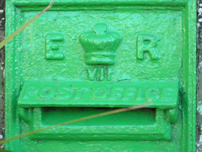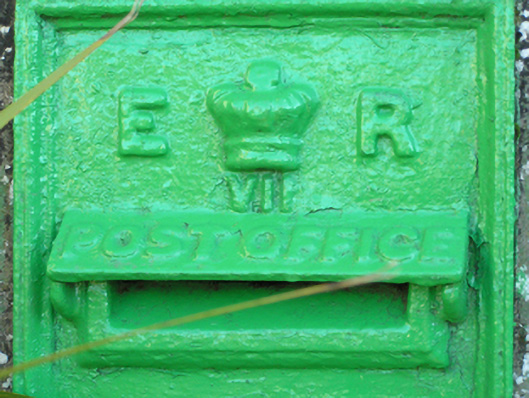 A "wall box" post box supplied by W.T. Allen and Company (fl. 1881-1955) of London representing an interesting example of mass-produced cast-iron work making a pleasing, if largely inconspicuous visual statement in a rural village street scene with embellishments identifying the artistic potential of the composition including the King Edward VII (1841-1910; r. 1901-10) royal cipher of additional significance as an imprinted reminder of the period when Ireland formed part of the British Empire.