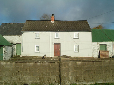 Detached three-bay two-storey farmhouse, c.1825, with single-bay two-storey entrance breakfront, and single-bay double-height lower outbuilding end bay to left. Refenestrated. Pitched slate roofs with clay ridge tiles, red brick Running bond chimney stack having stringcourse, and cast-iron rainwater goods on rendered eaves. Painted rendered walls over random rubble stone construction with painted random rubble stone walls to end bay. Square-headed window openings with painted cut-stone sills, and replacement uPVC casement windows. Square-headed door opening with replacement timber panelled door. Square-headed door opening to end bay with painted red brick voussoirs, and timber boarded door. Set in own grounds perpendicular to road. (ii) Attached single-bay single-storey outbuilding, pre-1840. Reroofed, c.1925. Pitched roof with painted corrugated-iron, c.1925, iron ridge, and no rainwater goods. Painted lime rendered walls over random rubble stone construction. Square-headed door opening with concealed lintel, and timber boarded door. (iii) Attached three-bay single-storey outbuilding, pre-1840, with single-bay single-storey recessed lower linking bay to right. Reroofed, c.1925. Pitched roofs with painted corrugated-iron, c.1925, iron ridges, and no rainwater goods. Painted lime rendered walls over random rubble stone construction. Square-headed window opening with concealed dressings, and timber fittings. Square-headed door openings with concealed timber lintels, and timber boarded doors.
