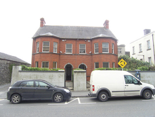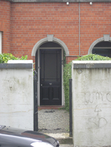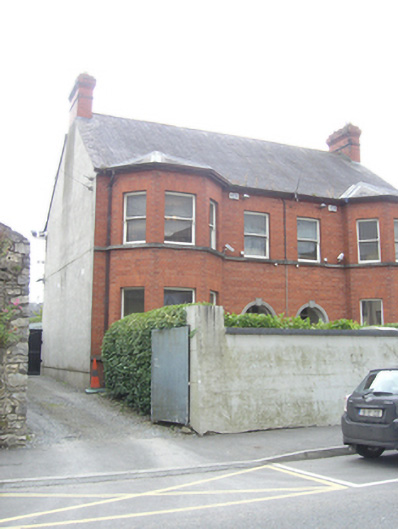 Semi-detached two-bay two-storey house, built c. 1900, located within the former Maryborough Fort, with tw-storey bay window and two-storey return. Pitched slate roof with clay ridge tiles, tall brick chimneystacks on gable and gable of return, cast-iron moulded gutters and square downpipes. English garden wall bond, red brick front elevation, rendered side and rear elevations, cut limestone plat band continuous with stone sills of first floor windows, square-headed window openings have brick surrounds, round headed limestone arch with keystone to porch. One-over-one timber sliding sash windows, two panelled door with margin panes to upper half. Set behind garden fronted by heavy battered boundary wall, ruled and line render with coping stones; side passage gives access to rear, flanked by random limestone wall of outbuildings to the east.