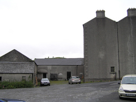 Attached six-bay two-storey rendered outbuilding, built c. 1820, attached to outbuilding (12505149) forming rear yard to Portleix House. Pitched artificial slate roof, clay ridge tiles, and cast-iron gutter to stone-flagged eaves, cast-iron hopper and downpipes. Pebbledash walls, square-headed window and door openings, limestone (tooled) sills, concrete overband to two door openings. Three-over-six timber sash windows, vertically-sheeted timber doors. Gravel yard forming courtyard to Portleix House.