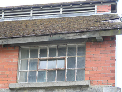 Detached multi-bay two-storey gymnasium, built c.1910, now disused. Pitched roof with original red synthetic tiles and terracotta ridge tiles, to single-storey section, raised ventilation ridge to two-storey section with timber louvres. Cast-iron rainwater goods to exposed timber rafter fact. Machine-made red brick walling laid in English garden wall bond. Coursed rough-hewn limestone wall to north and west below first floor sill level and concrete base. Square-headed window openings, concrete sills, some multi-pane steel windows, some boarded up. Square-headed door opening with double-leaf vertically-sheeted timber doors.